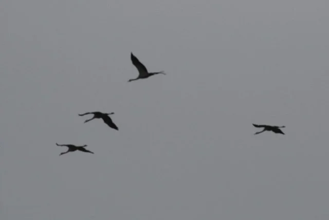 As the wind was picking up, we returned inland for more shelter and found it in the cosy King Alfred Inn by Burrowbridge. Storm Agnes was really kicking off as we left the pub after a hearty lunch, however after a quick cultural stop at Athelney (where King Alfred burnt the cakes) the rain had slightly eased, so we braved the elements at Stathe Bridge by the River Parrett and were rewarded with 11 Cranes flying in a v-formation close overhead giving us excellent views. Again, we were in exactly the right place at the right time – no luck at all, as Graeme confirmed it was all about the expert planning!?
